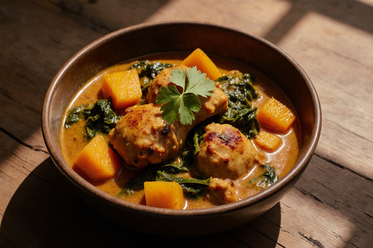 You’ll need: chicken breast, butternut squash, red onion, curry powder, coconut milk, garam masala, garlic, ginger, spinach, and fresh cilantro. Ingredient quality matters – pick fresh, vibrant produce and a premium curry powder blend.