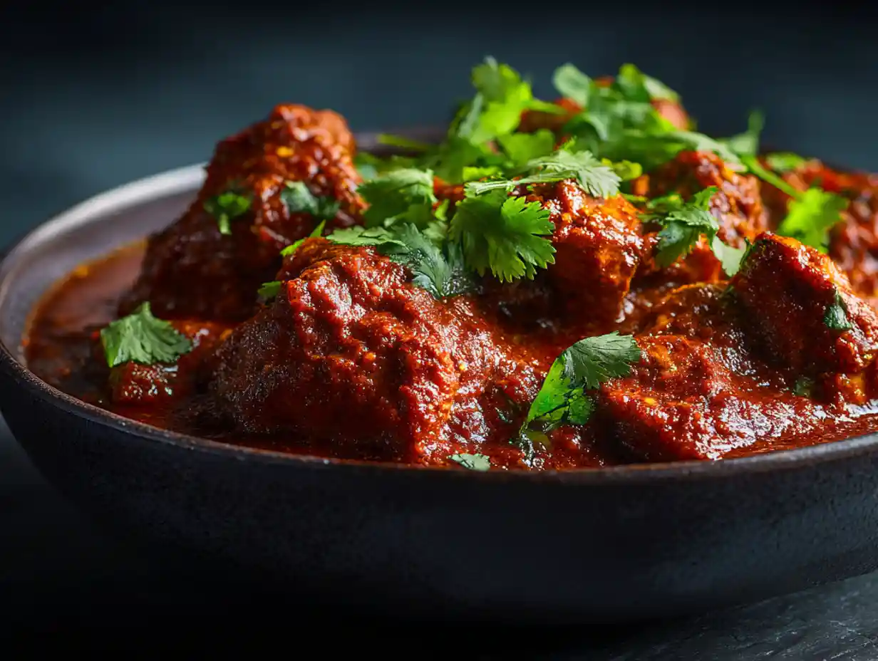 This curry deserves respect. Serve it in a warm bowl. Don’t drown it in rice; place a generous portion in the center and let that deep, red, glossy sauce pool around it. The sauce should be thick enough to cling to every piece of chicken. A pile of fluffy basmati rice on the side is essential, as is a warm piece of naan bread for the critical job of wiping the bowl clean. A final, generous scattering of bright green, fresh cilantro isn’t just a garnish; its fresh, citrusy flavor cuts through the richness and completes the dish.
