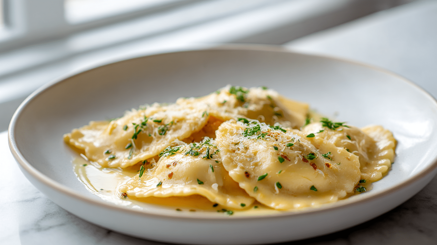 Once cooked, transfer the ravioli right into your butter sauce. Toss gently to coat—don’t overdo it or you might break them! Serve right away, garnished with extra herbs and a sprinkle of parmesan.