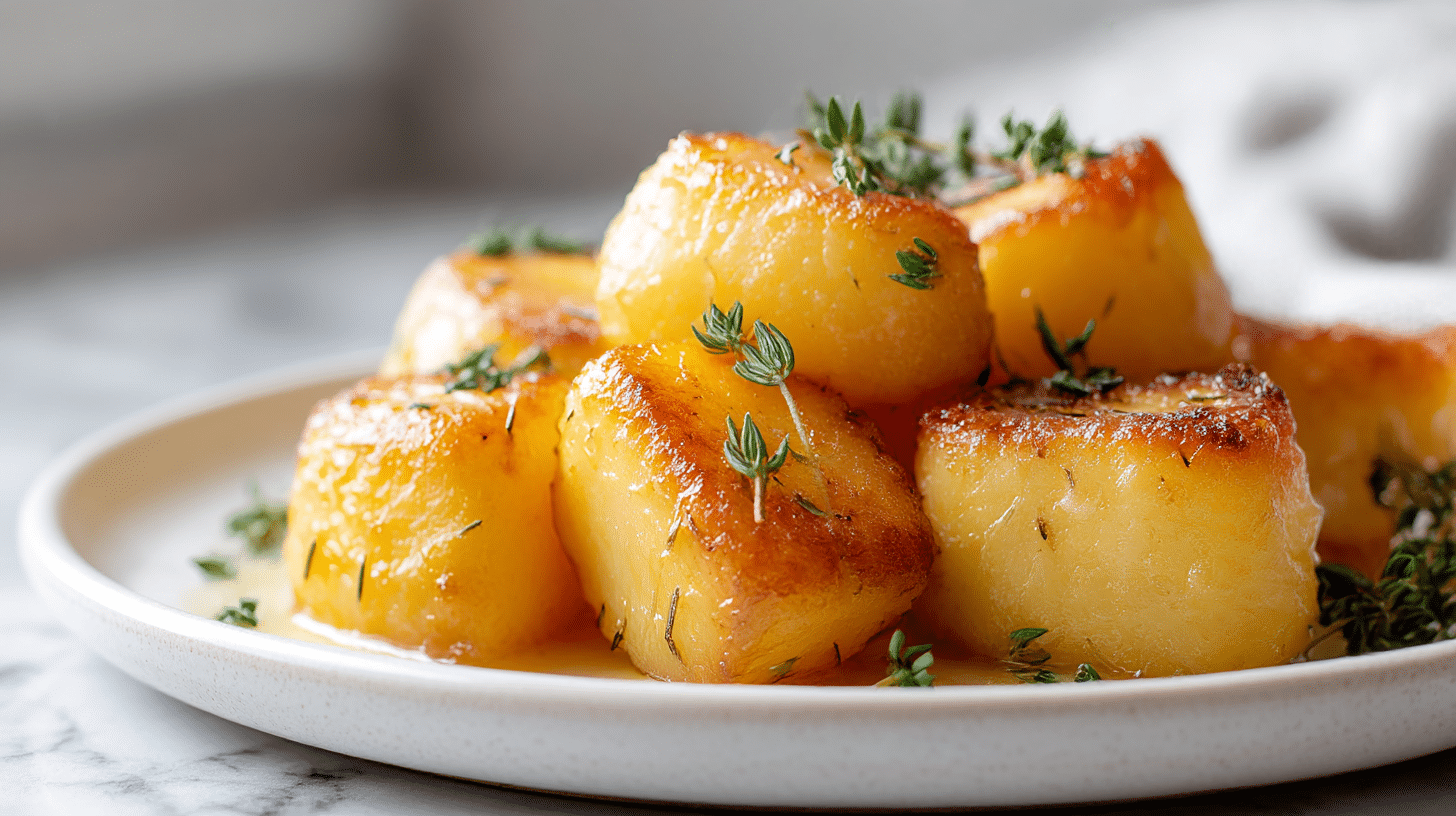 A good stock adds another layer of flavor. Homemade or store-bought chicken or vegetable stock works well. You’ll need about 300ml; pour it in after searing for that incredible fondant flavor profile which makes these potatoes so special: fondant potatoes.