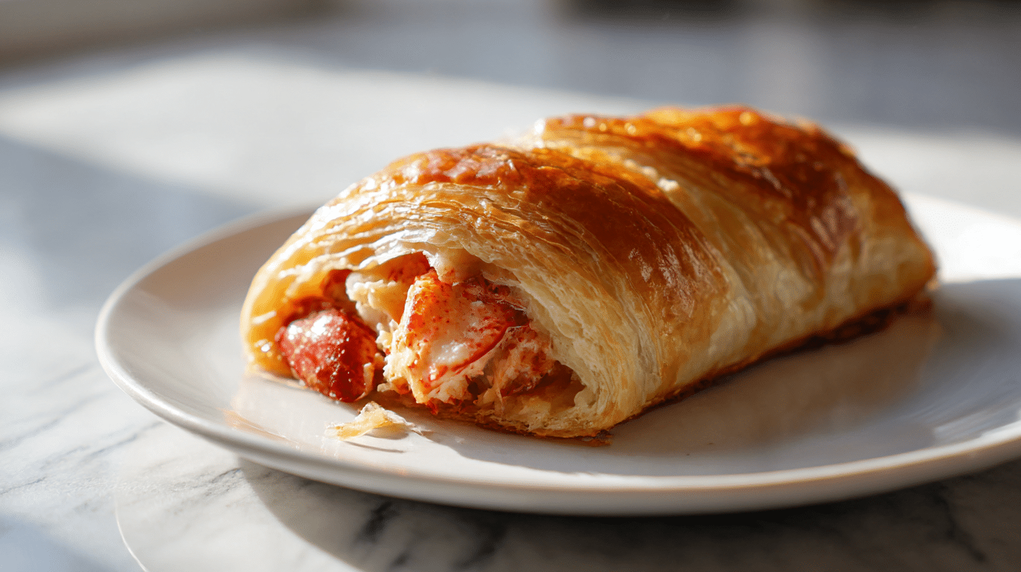 Roll out your puff pastry to about 5mm thick. Layer your duxelles, then the lobster, and finally wrap it all up tightly. Don’t skimp on the sealing—use a bit of egg wash to hold it together. Chill for 30 minutes to help retain its shape before baking.