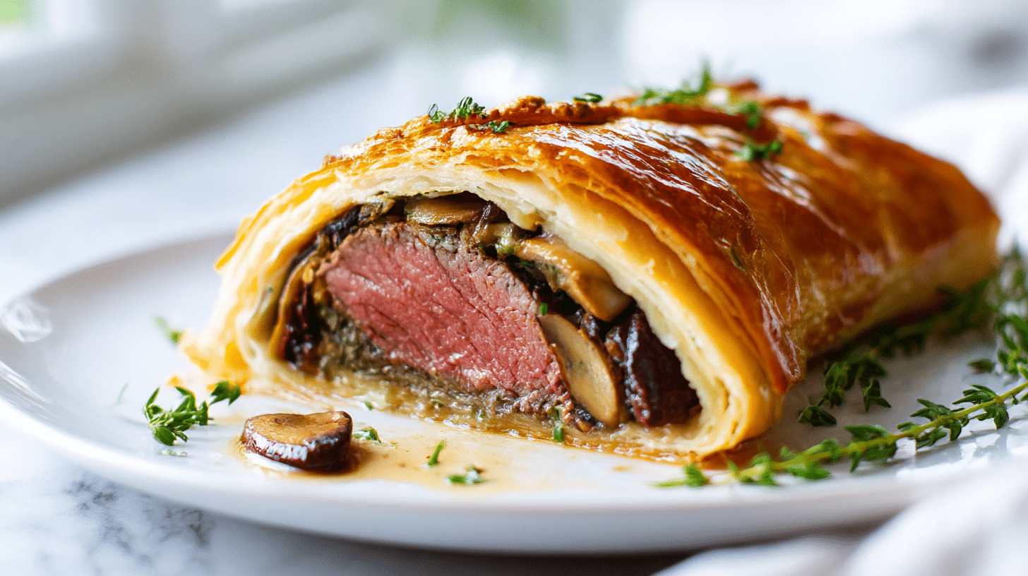 Finally getting your gordon ramsay venison wellington just right is like scoring the winning goal in a high-stakes match. The aroma of perfectly cooked meat mingling with the buttery, golden pastry is a culinary miracle you’ll be proud of. Each bite offers a stunning contrast—crispy outside, tender meat inside, and that earthy duxelles holding it all together. This isn’t just cooking; it’s artistry! Now it’s your turn — make it bold, make it yours.